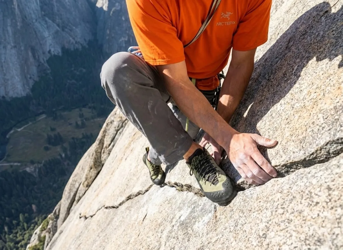 Pro-Tip: On technical granite slabs, chalk up, then clap your hands forcefully and wipe your fingertips on your pant leg before touching the rock. You want the drying agent in your pores, not sitting on top of your ridges.