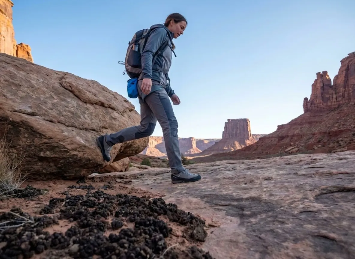 There’s no perfect approach shoe lug pattern study for crypto impact—yet. But sticky climbing rubber designed for high friction may grab and tear cyanobacterial sheaths more effectively than hard lugged soles. Lighter, smooth-soled approach shoes work well for the rock-hopping technique that minimizes soil contact.