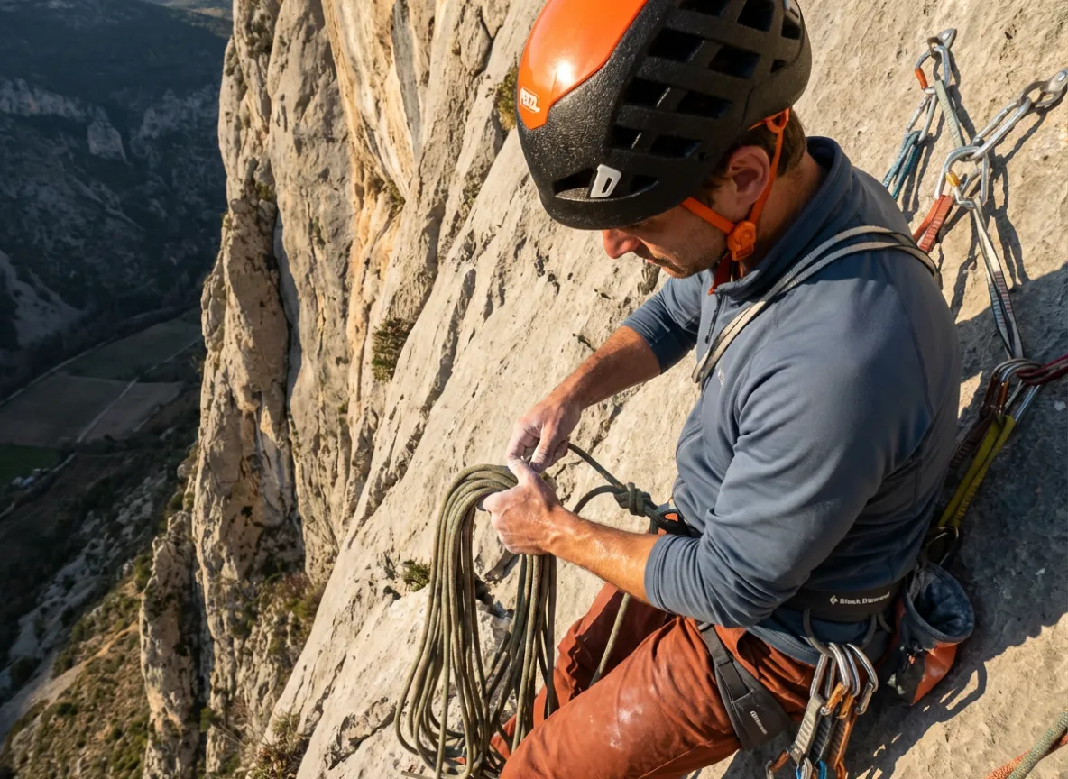Redundancy is king. Use the “Bight Method” to ensure you are never disconnected from the rope. Learn to distinguish between Mussy Hooks and Rings instantly, and respect the physics of the swing on steep terrain. Before your next ascent, practice these motions on the ground until your hands know the movements without your eyes watching. Safety is a muscle—train it.